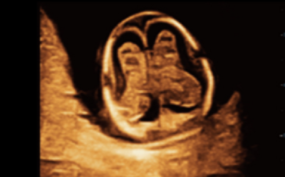 Resolusi detail yang sangat baik pada janin 9 minggu